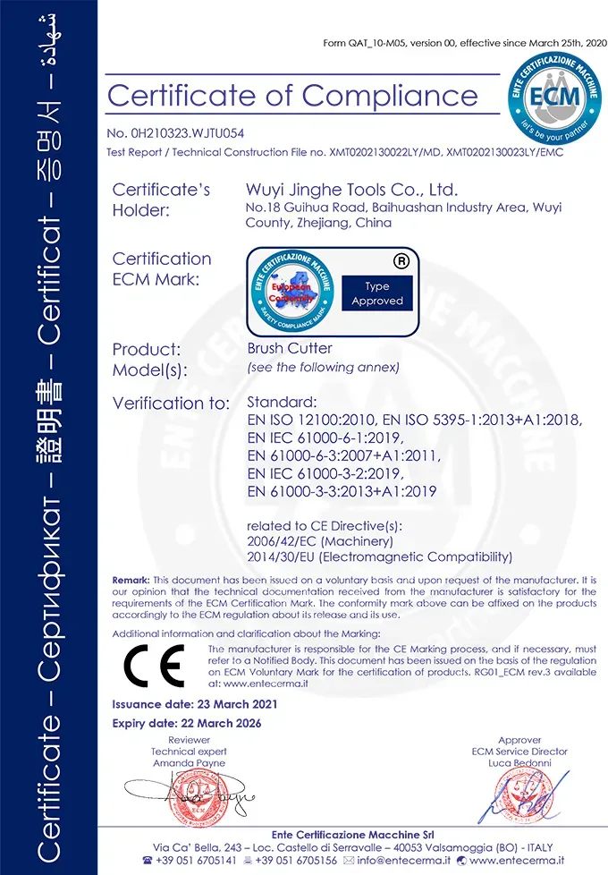 Certifications autorisées, garantie qualité - Tous nos produits ont passé les certifications internationales de système de gestion de qualité, les certifications de normes de sécurité et les certifications de protection environnementale. Cela garantit que chaque équipement répond aux normes de qualité les plus élevées, vous offrant des solutions professionnelles fiables en outils de jardin.